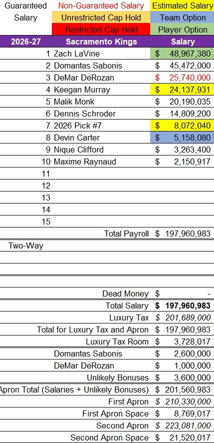 This extension, along with the rest of the Kings’ long-term salary commitments, will give them a 2026-27 payroll north of $200 million. This means that they will exceed the luxury tax threshold if they run back their current roster.